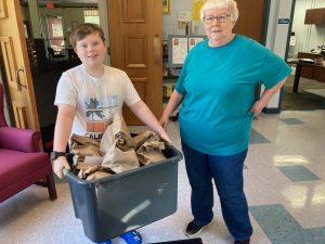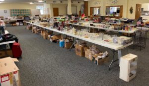 Members of LFUMC traveled to Pawnee Illinois to the “Midwest Distribution Center” for a morning of packing baby layette kits.